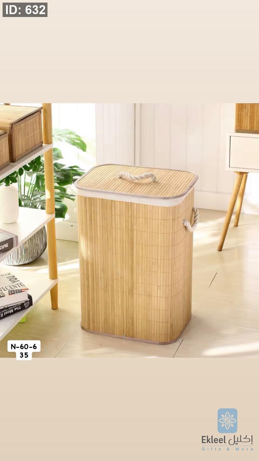 سلة ملابس خشبية مربعة